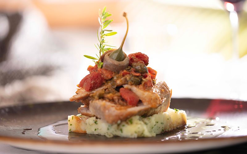 Cipollotto, Pinoli, Uvetta, Acqua di Limone e Pane ai Capperi